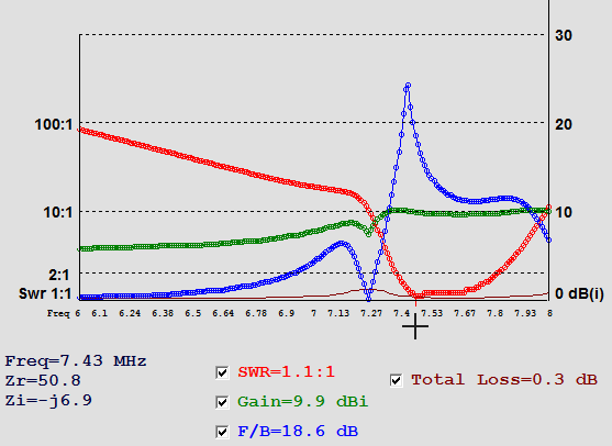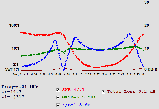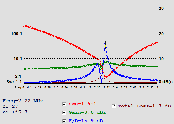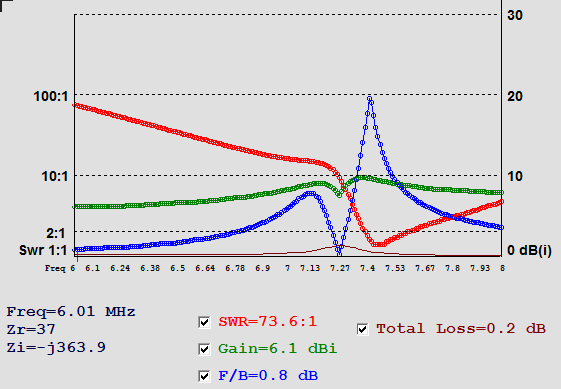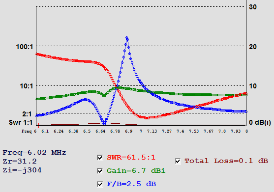 ![]() The current in the Director wire was ~ 30% of the DE and and 50% of the Reflector, so I deleted the Director and made a 2 El Mini Horse (next below) |