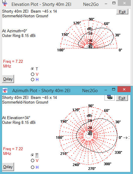 All antennas are 45-50 feet above ground, using Sommerfield-Norton Ground parameters of Conduct =5ms , Dielectric=13